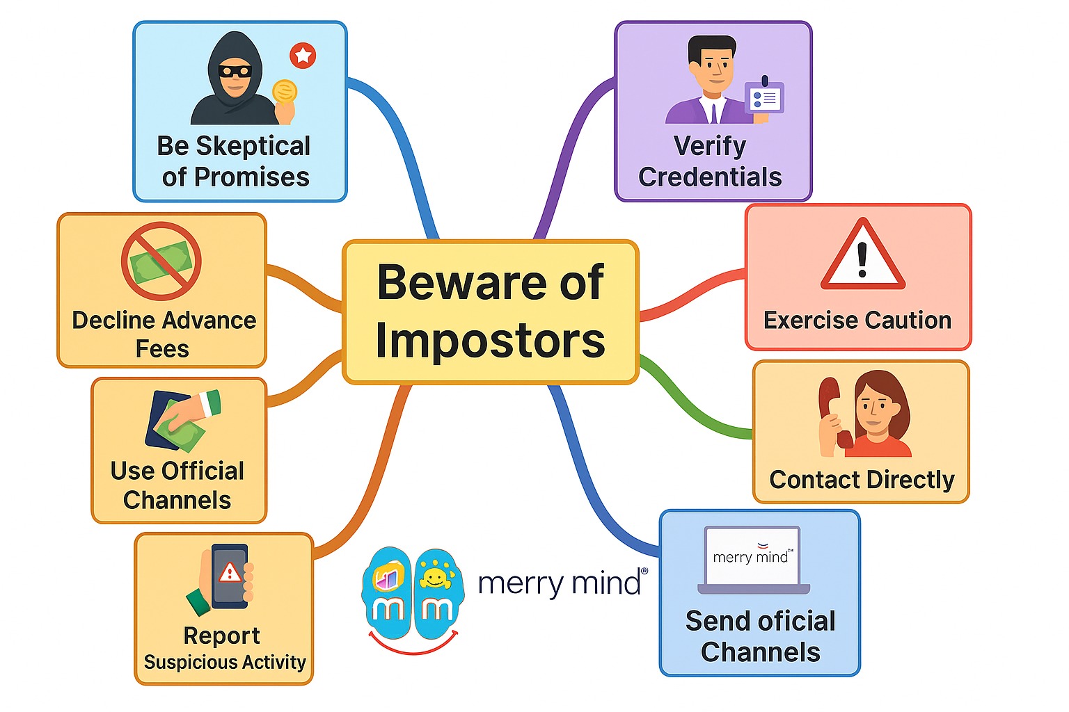 If someone contacts you pretending to be from Merry Mind or using our name to offer investment advice, follow these steps: